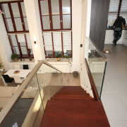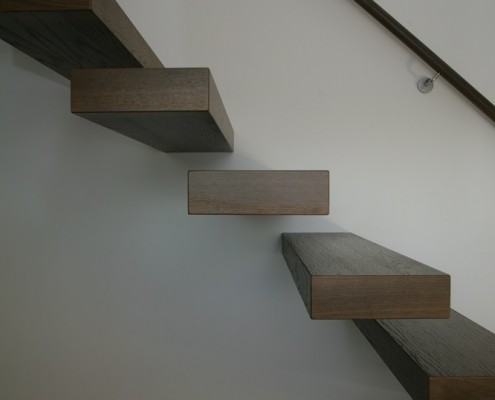 Wie aus der Wand gewachsen ragen die Stufen in den Raum, das Fehlen der Tragkonstruktion läßt sie schweben.